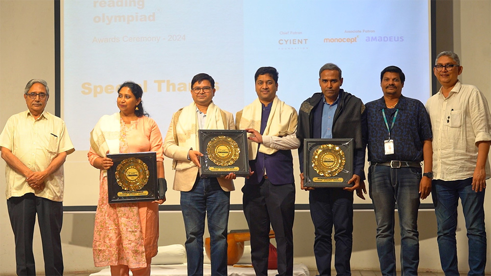 IRO (India Reading Olympiad) promotes active reading spaces and joy, aiming to encourage reading habits, appreciate individuals, groups, and institutions promoting reading, and inspire citizens to become lifelong readers and book lovers. Cyient Foundation, a patron of the Food 4 Thought Foundation, was invited to participate in its reading decathlon. Dr. Narasimham, a distinguished member of the festival’s jury and Head of Corporate at Cyient, presented the award for the “Best Library for Kids”. Volunteers from the Cyient CSR Foundation and students from Cyient-adopted schools, such as ZPHS Khajaguda, ZPHS Gachibowli, and ZPHS Raidurg, actively participated in the festival, with five students each accompanied by their teachers. Students B. Harika and U. Koteshwar from Cyient-adopted Zilla Parishad High School Shamsiguda were honored with gold medals in Telugu and English, respectively, during the festival.